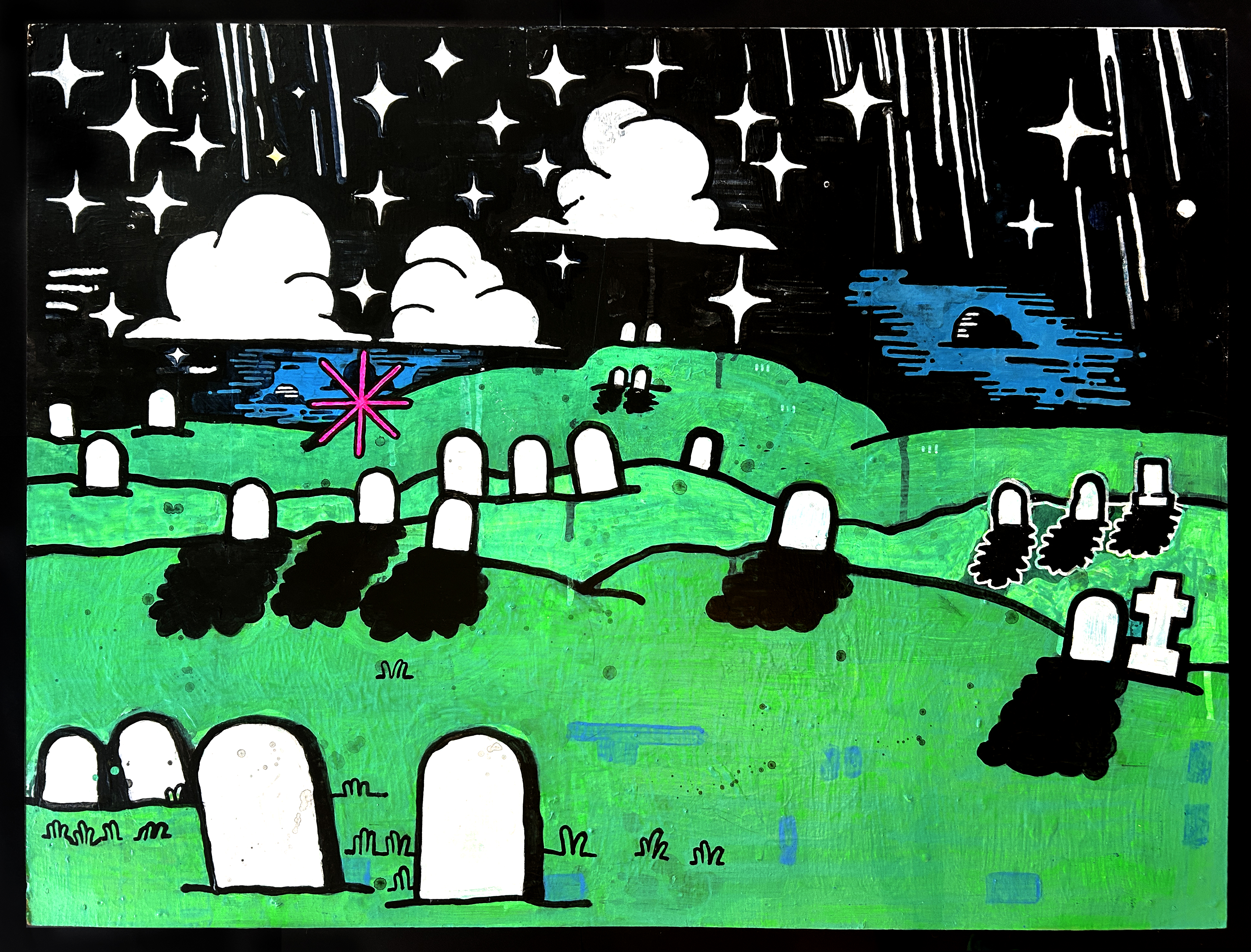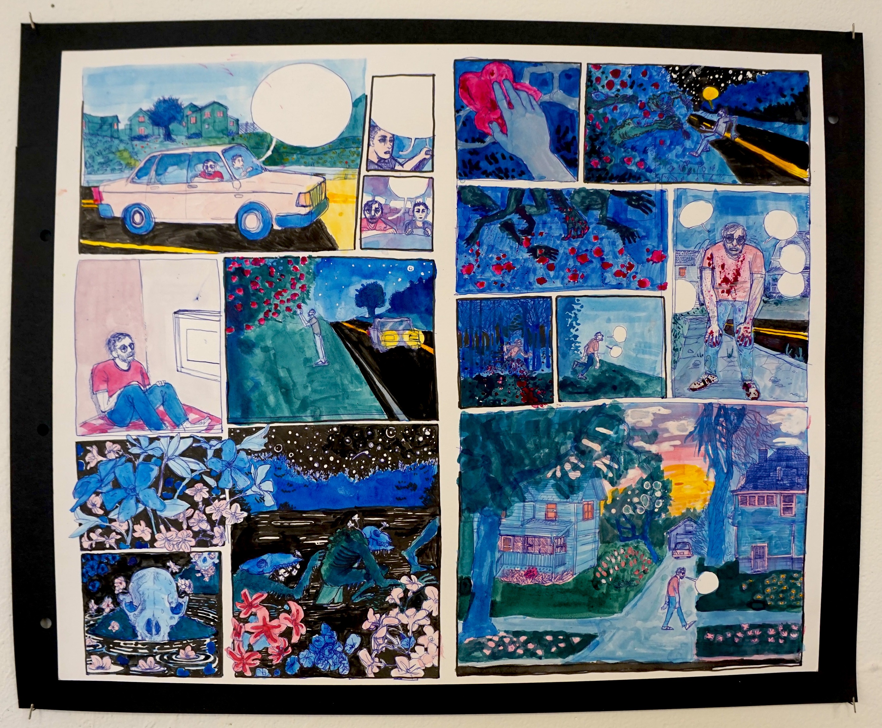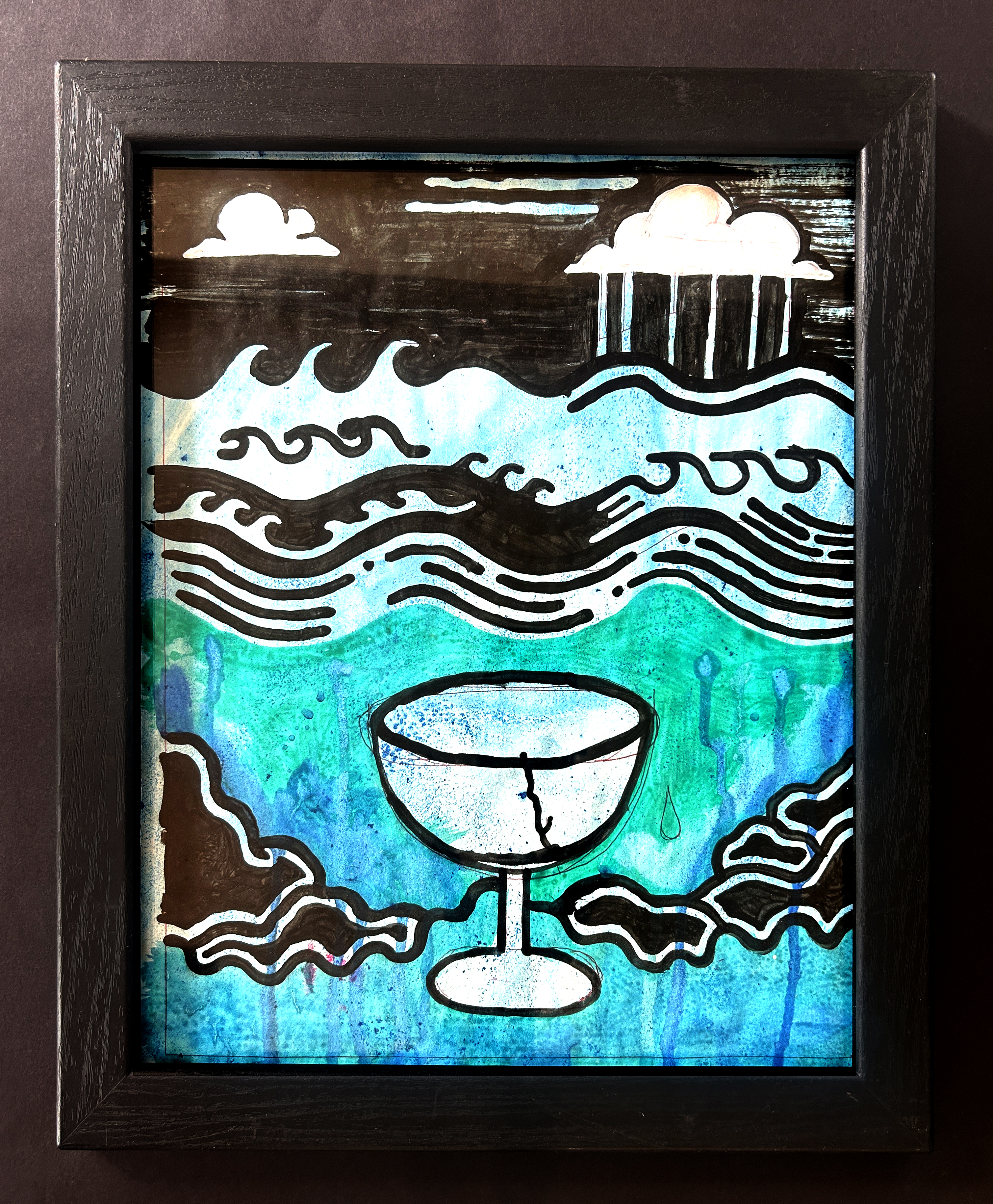 Curse of the Deathflower, 2018, gesso, collage, ink
