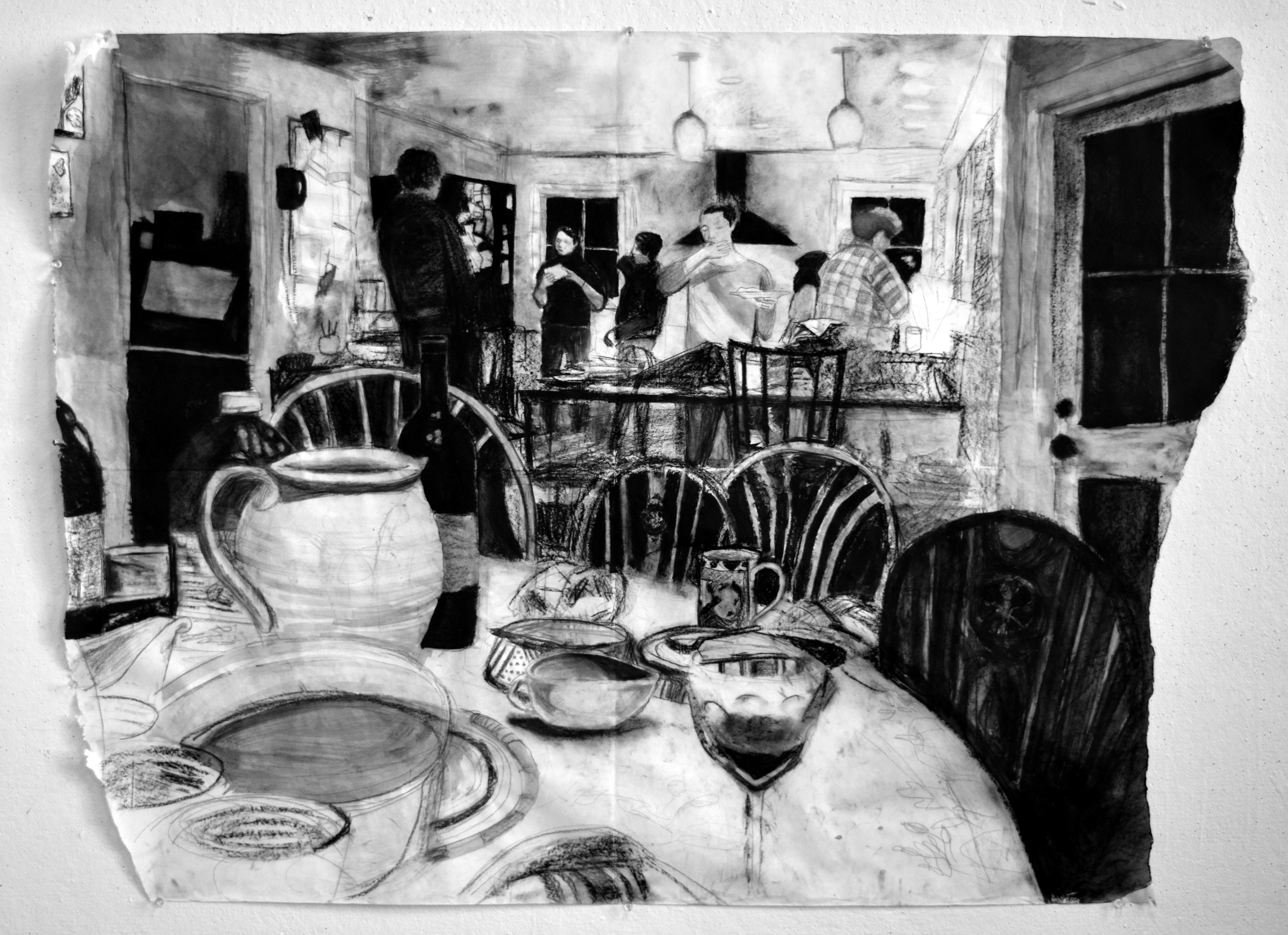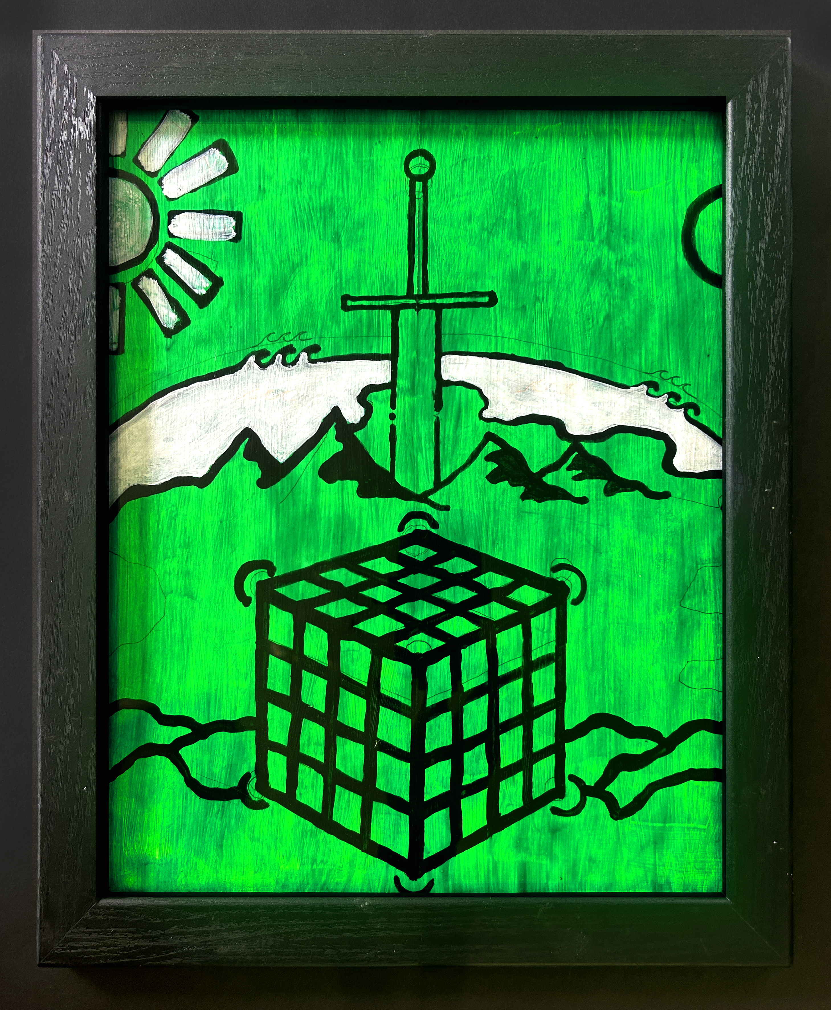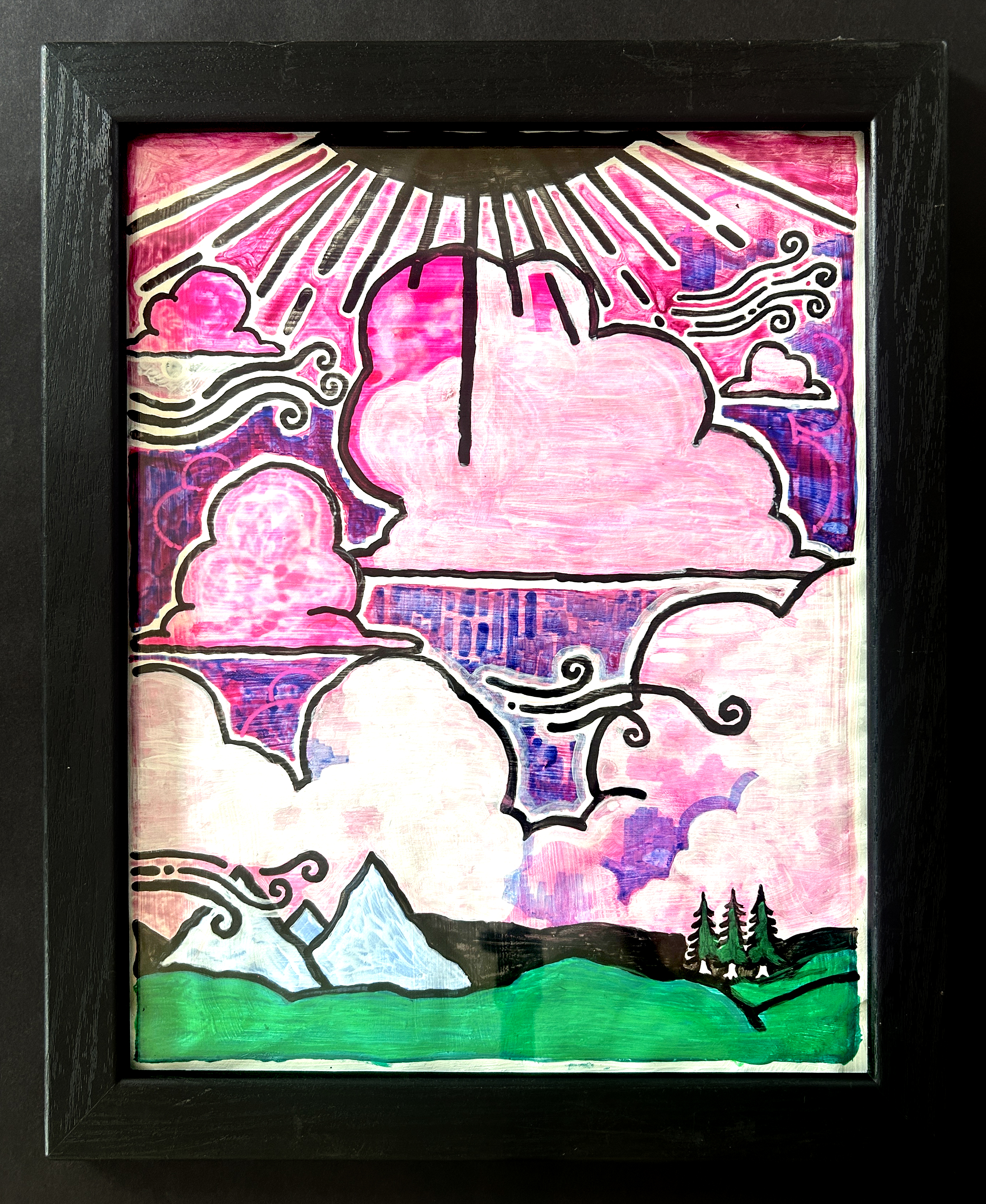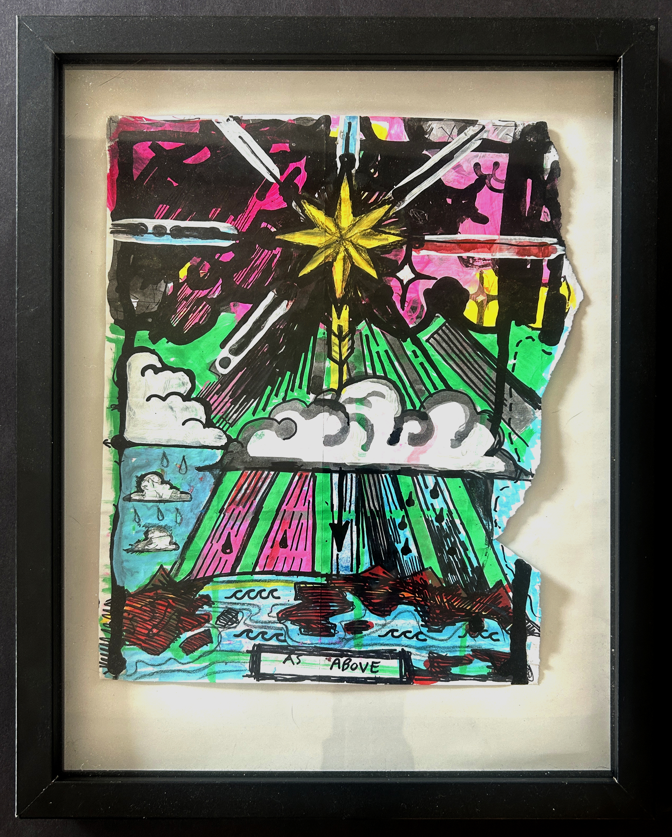 Curse of the Deathflower, 2018, gesso, collage, ink